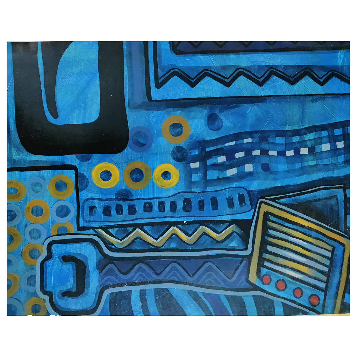 Conceptual and thought-provoking, this piece uses symbols or abstract motifs to suggest learning, growth, and clarity. Structured layout and balanced colours bring a sense of discipline, insight, and intellectual energy. Suits study rooms, offices, or spaces meant for work and learning.